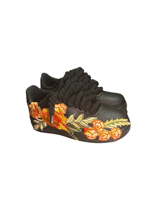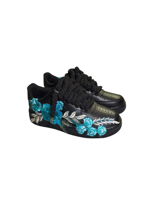 NIKE AIR FORCE 1 Negras personalizadas “ROPE LACES” Rose