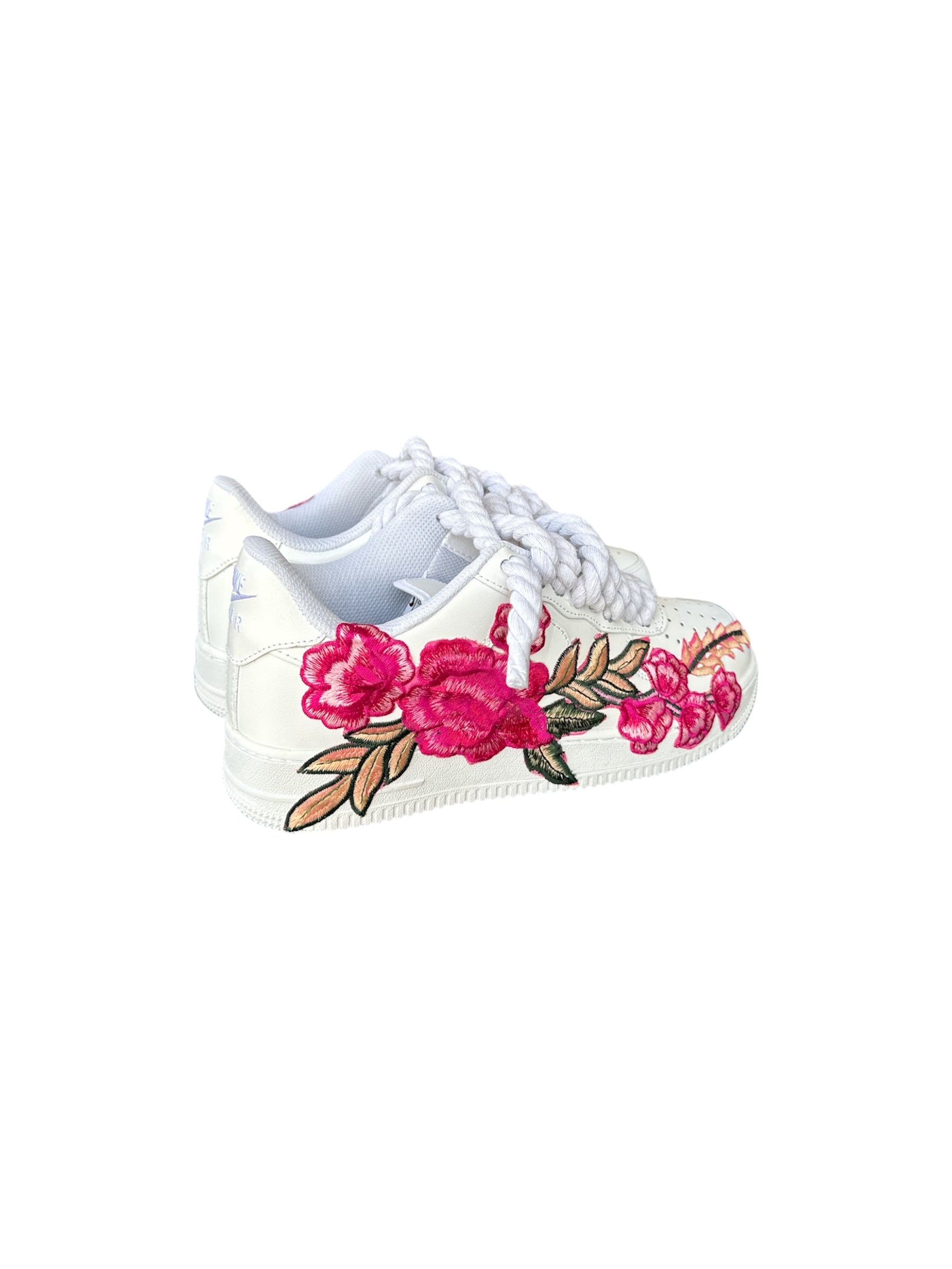 NIKE AIR FORCE 1 Blancas personalizadas “ROPE LACES” Rose